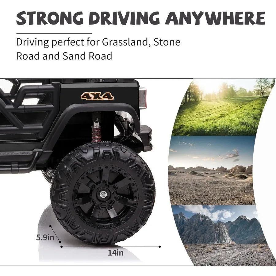 Black 48.4 Large Ride On Car for Battery Powered Electric Car with 2 Seats Remote Control 14 Large Suspension Wheels LED Lights